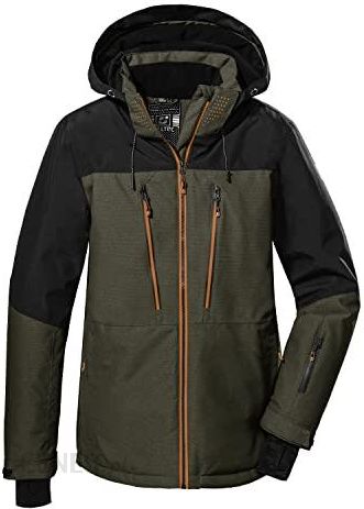 Kurtka narciarska z odpinanym kapturem i łapaczem śniegu Słup wody 10 000 mm, klejone szwy, 100% wodoszczelne oddychająca (3000 g/m²/24 h), wiatroszczelna Regulująca temperaturę wstawka z siateczki, wodoszczelny zamek błyskawiczny Nie zawiera PFC i częściowo z materiału pochodzącego z recyklingu